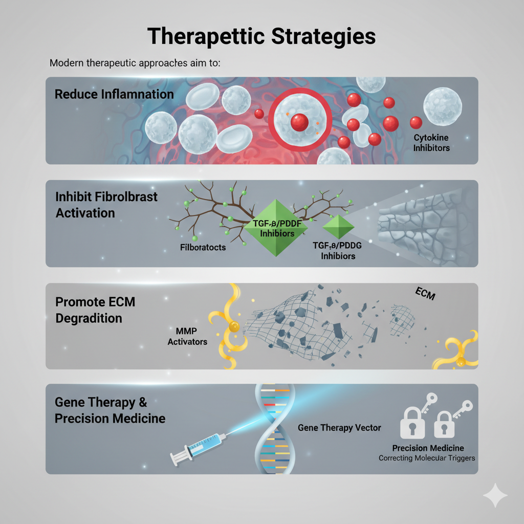 - Inhibit fibroblast activation (TGF-β or PDGF inhibitors)